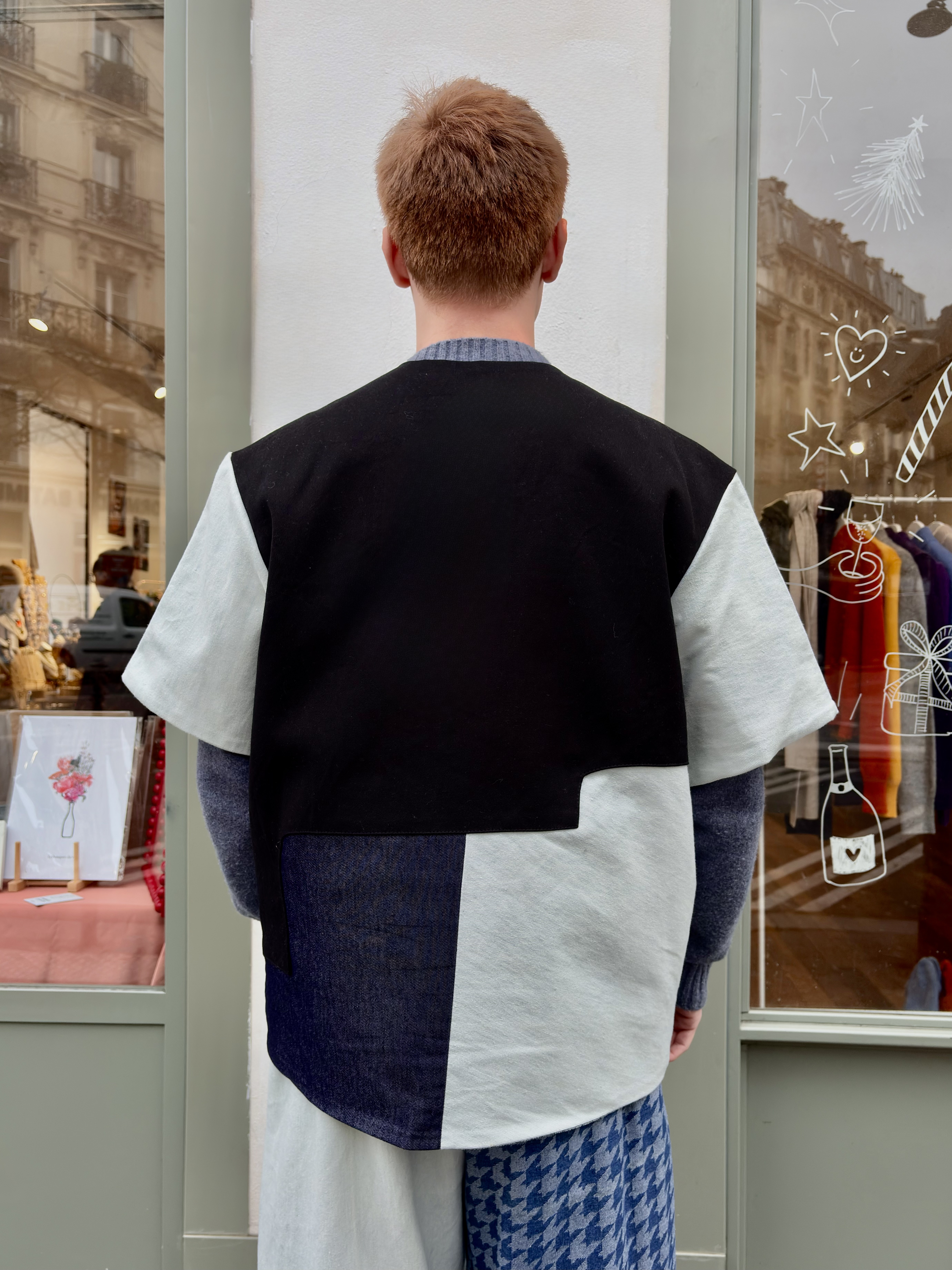 Veste KIM denim réversible 150.0 EUR Ce vêtement est un mélange de deux inspirations : le vestiaire traditionnel vietnamien et le vestiaire casual occidental. C'est la pièce qu'il vous faut si vous souhaitez un  intemporel qui vous...